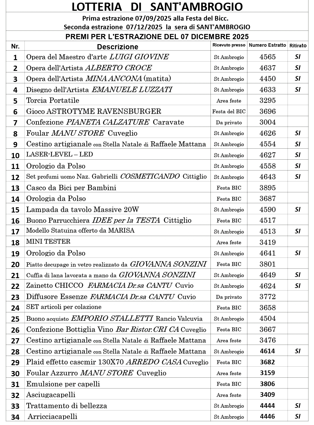 Per ritirare il premio inviare una mail a info@arcumeggia.it entro il 31/12/2025